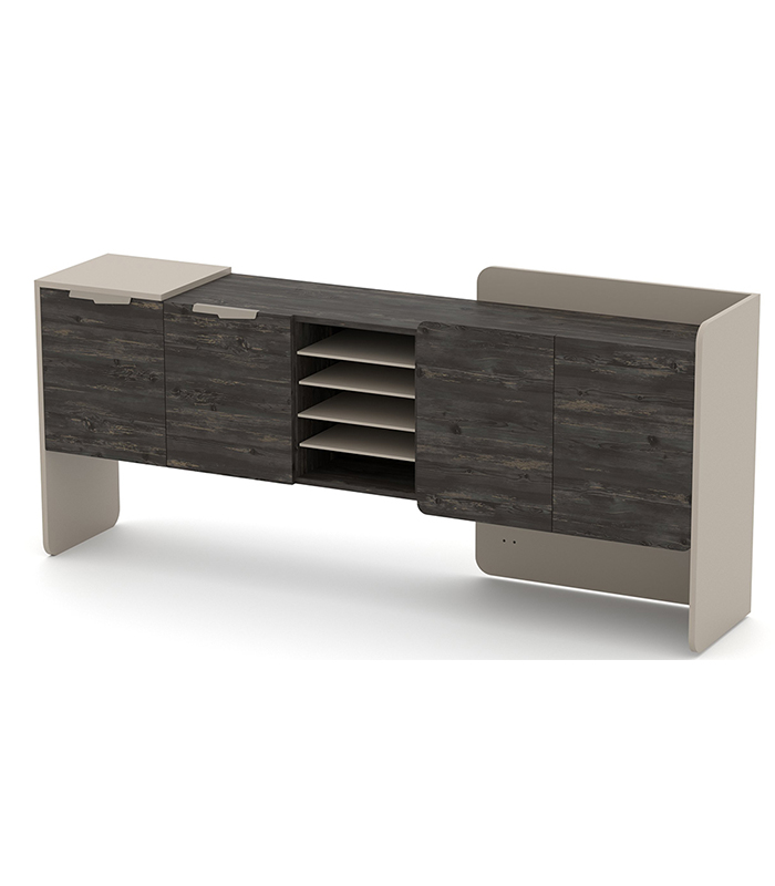 Özel kreasyonlarımızdan olan Corte Yönetici Takımı, açık ton ve koyu tonların orantılı kullanımıyla dikkat çekiyor. Açık tonların ferahlığı ile koyu ahşap tonlarının sağlamlık hissi uyandıran birleşimi, Corte Yönetici Takımı’na şık bir görünüm kazandırıyor. Ofis ortamında modern çizgileri yansıtan takım, tarz sahibi yöneticiler için özel olarak tasarlanmıştır.